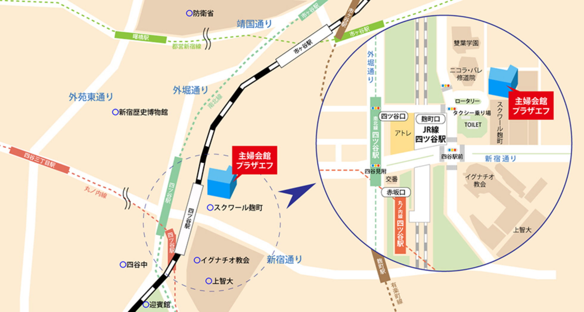 JR四ツ谷駅、東京メトロ丸ノ内線・南北線四ツ谷駅が最寄りです。